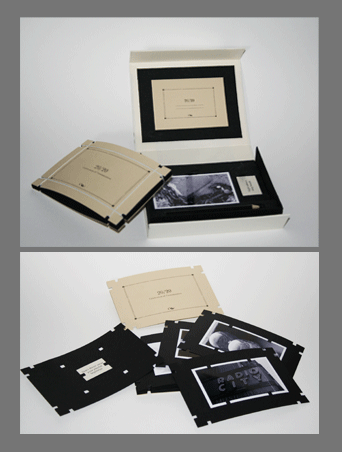 I tried to create a book that eliminated the basics of what makes a book a book. I wanted to design a structure where the viewer can create the type of story they want. There is no binding, only rubberbanded edges that can be arranged and rearranged. And nothing is fixed to the book, all the elements are completely movable.