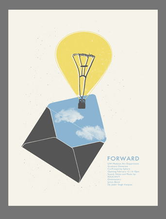 Art show, music gig, and gathering of UW art alumni required a unique and forward thinking image. And if I had a light bulb hot air balloon, I'd totally fly the friendly envelope skies.