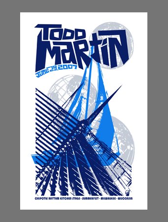 I tried to make this poster less specific to Todd, since he's not super well known in the midwest, and bring in new fans to his music by featuring some Milwaukee/Summerfest landmarks on his poster.