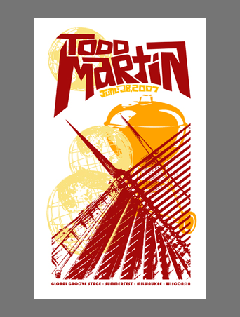 I tried to make this poster less specific to Todd, since he's not super well known in the midwest, and bring in new fans to his music by featuring some Milwaukee/Summerfest landmarks on his poster.