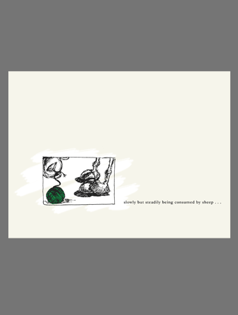 Sheep are almost as cool as penguins. So here's a print about a sheep eating some yarn. Why not?